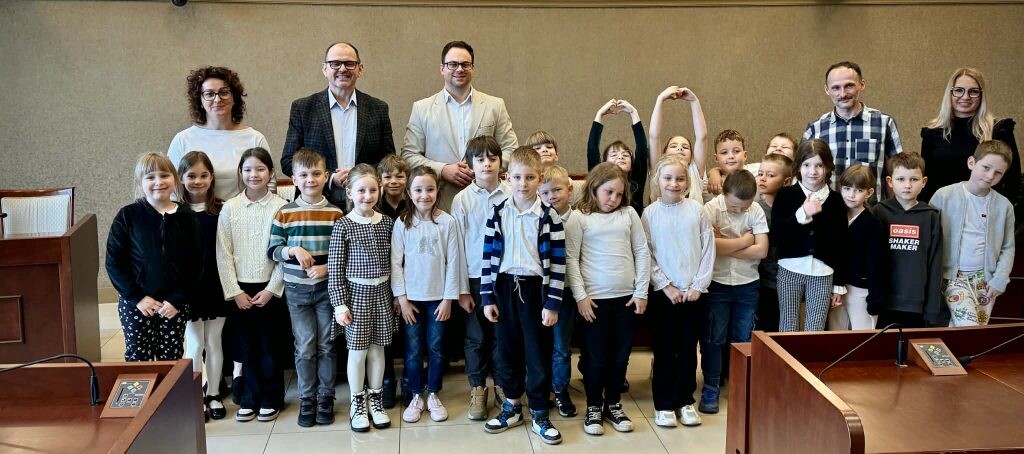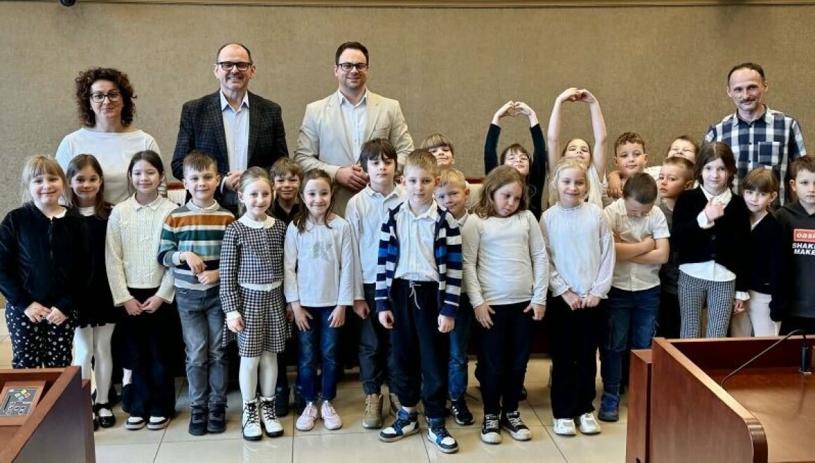 Uczniowie pierwszej klasy ze Szkoły Podstawowej nr 9 im. Henryka Sienkiewicza w Jaworznie wzięli dziś udział w kreatywnej lekcji samorządu, która odbyła się w Sali Obrad Urzędu Miejskiego. Spotkanie było okazją do poznania tego, jak funkcjonuje miasto i kto odpowiada za podejmowanie najważniejszych decyzji dla mieszkańców.