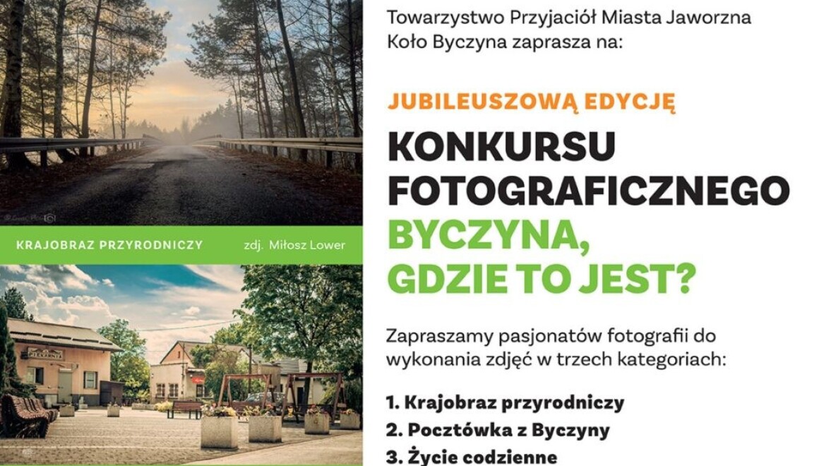 Towarzystwo Przyjaciół Miasta Jaworzna – Koło Byczyna zaprasza mieszkańców oraz pasjonatów fotografii do udziału w jubileuszowej, dziesiątej edycji konkursu fotograficznego „Byczyna, gdzie to jest?”. Wydarzenie skierowane jest do wszystkich, którzy chcą uchwycić wyjątkowy charakter tej części Jaworzno i podzielić się swoim spojrzeniem na jej codzienność oraz walory krajobrazowe.