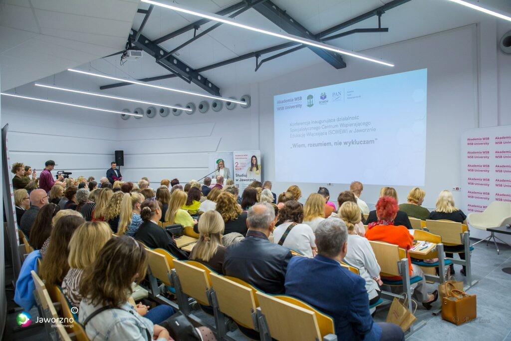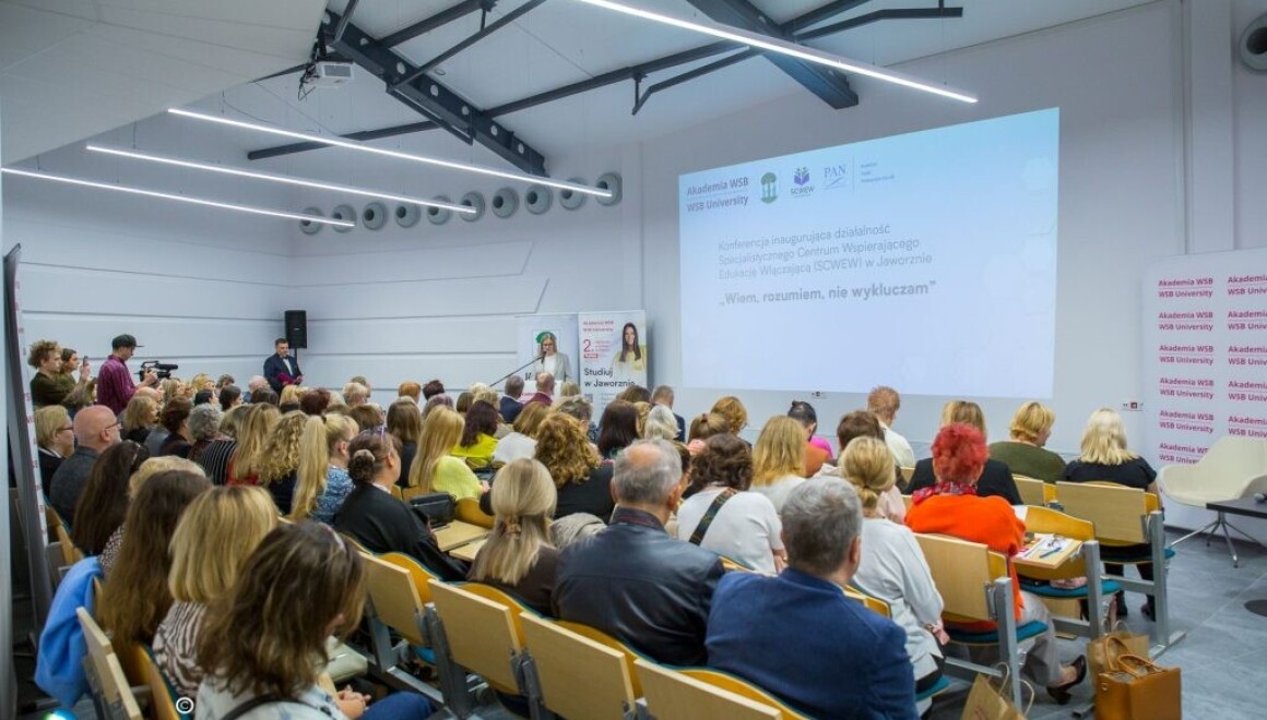 Konferencja pod hasłem „Wiem, rozumiem, nie wykluczam” zgromadziła dyrektorów szkół i przedszkoli, nauczycieli oraz przedstawicieli instytucji edukacyjnych. Wśród prelegentów znaleźli się eksperci Akademii WSB i Ośrodka Rozwoju Edukacji, m.in. prof. dr hab. Mirosława Nowak-Dziemianowicz, prof. dr hab. Monika Bąk-Sosnowska, dr hab. Sławomir Trusz. Zespół SCWEW w Jaworznie – mgr Katarzyna Kurek oraz mgr Agnieszka Mlostek – przedstawił zakres działań centrum oraz formy wsparcia kierowane do szkół. Podkreślono, że SCWEW ma pełnić rolę partnera dla dyrektorów i nauczycieli w pracy z uczniami o zróżnicowanych potrzebach edukacyjnych.