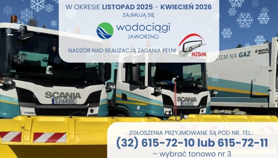 Podobnie jak w ubiegłych latach, dla mieszkańców w sprawach zimowego utrzymania dróg, uruchomiony został numer telefonu dyspozytorskiego – (32) 615-72-10 lub (32) 615-72-11 – następnie należy wybrać tonowo nr 3