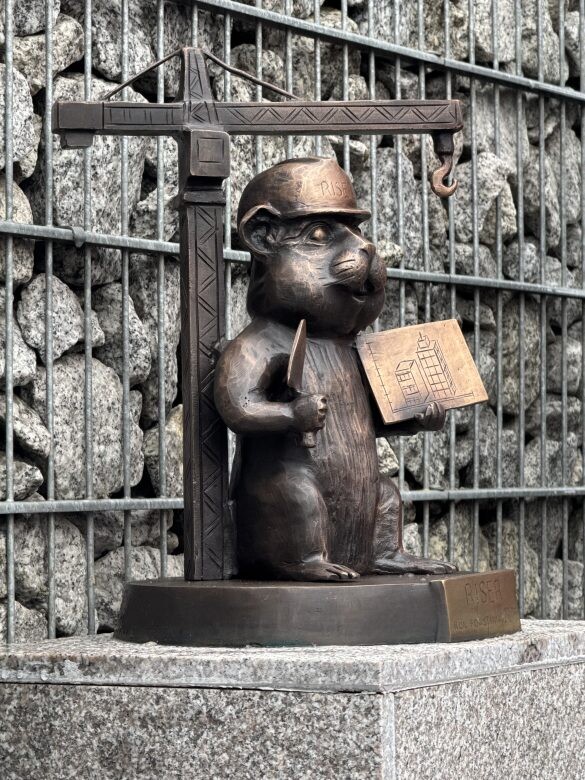 To trzeci figurka, która została ufundowana przez przedsiębiorców. Pierwszą był chomik elektryk ufundowany przez firmę COPCO, który znajduje się na skwerze na Podwalu a drugą chomik górnik, którego spotkamy w Centrum przy siedzibie Południowego Koncernu Węglowego.