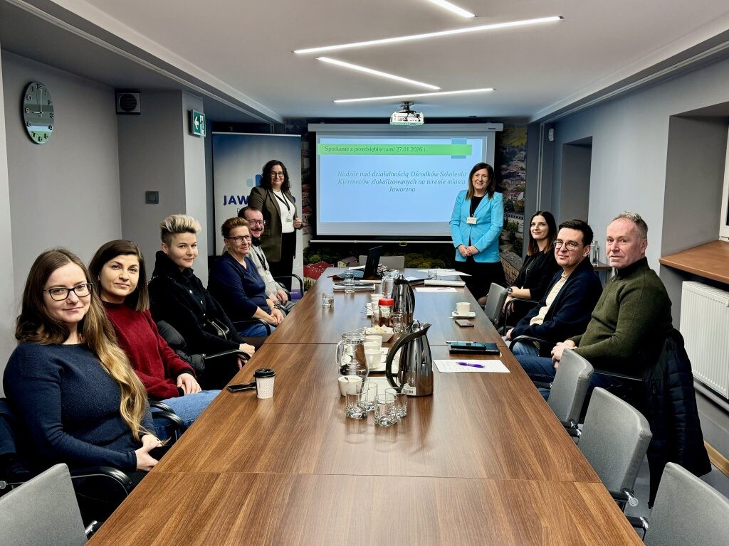We wtorek, 27 stycznia 2026 r., w Urzędzie Miejskim w Jaworznie odbyło się spotkanie skierowane do przedsiębiorców prowadzących na terenie miasta ośrodki szkolenia kierowców. Wydarzenie zostało zorganizowane przez Wydział Spraw Obywatelskich i dotyczyło wyników kontroli przeprowadzonych w 2025 roku oraz zagadnień związanych z wdrażaniem przepisów ustawy o przeciwdziałaniu zagrożeniom przestępczością na tle seksualnym i ochronie małoletnich, tzw. ustawy Kamilka.