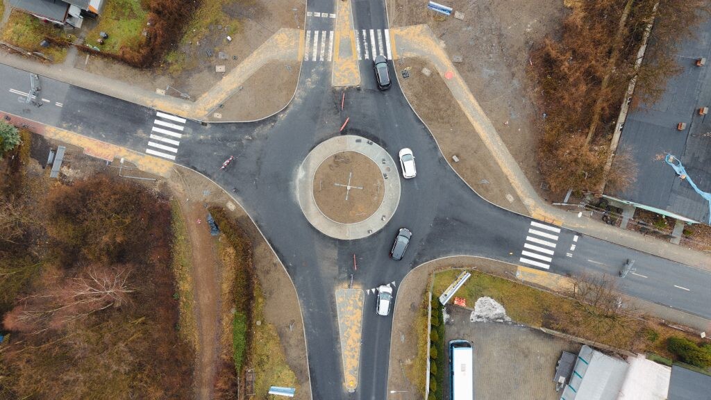 W rejonie ronda przy ul. Olszewskiego prace zostały czasowo wstrzymane z uwagi na niesprzyjające warunki atmosferyczne. Prognozowane warunki pogodowe pozwalają na wznowienie robót co zapewni odpowiednią jakość i trwałość wykonywanych prac. Wykonanie poziomego oznakowania w technologii grubowarstwowej, uszczelnienie przerw dylatacyjnych oraz dokończenie robót betonowych pozwoli na oddanie jej do użytku w przeciągu dwóch miesięcy. Roboty przebiegają zgodnie z harmonogramem i obejmują infrastrukturę techniczną niezbędną dla prawidłowego funkcjonowania układu drogowego.