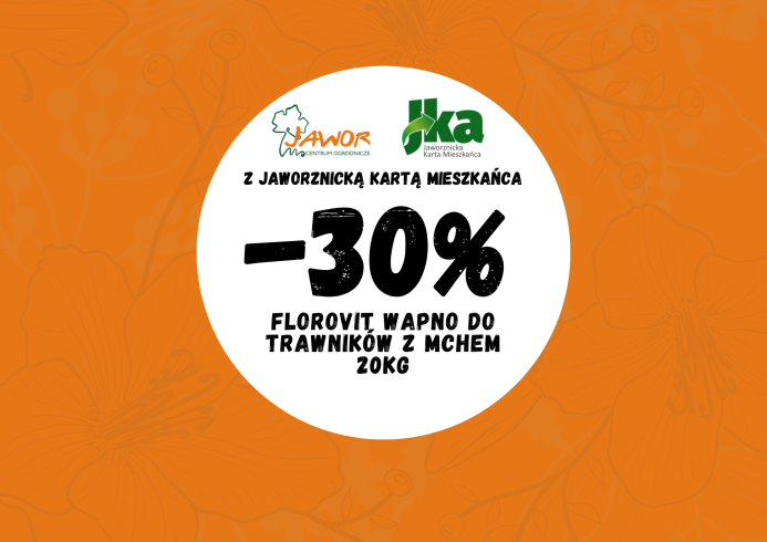 Drodzy posiadacze Jaworznickiej Karty Mieszkańca (J-ka)! Przygotowaliśmy dla Was wyjątkową promocję. Tylko z J-ka, Florovit wapno do trawników z mchem 20 kg dostępne w naszym sklepie kupicie z rabatem 30% od ceny widocznej na sklepowej cenówce!