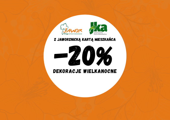 Drodzy posiadacze Jaworznickiej Karty Mieszkańca (J-ka)! Przygotowaliśmy dla Was wyjątkową promocję. Tylko z J-ka, Dekoracje wielkanocne dostępne w naszym sklepie kupicie z rabatem 20% od ceny widocznej na sklepowej cenówce!