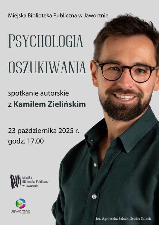 23 października o godz. 17.00 zapraszamy na spotkanie z Kamilem Zielińskim, autorem książek „Psychologia oszukiwania. Jak oszukujemy i jesteśmy oszukiwani”, „Psychoefekty", „Psychokompetencje" oraz podcastu „Psychologia niepopularna".