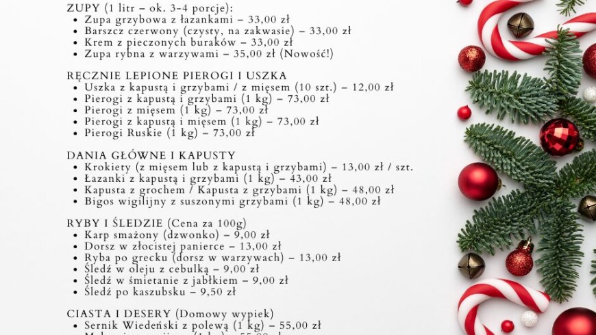 Gotujemy tradycyjnie i z sercem – dokładnie tak, jak u mamy: Pierogi i uszka – lepimy ręcznie, nie żałując farszu. Zupy – pachnące prawdziwymi grzybami i zakwasem. Ryby i śledzie – świeże, chrupiące i idealnie doprawione. Ciasta – domowe wypieki, bez "ulepszaczy".