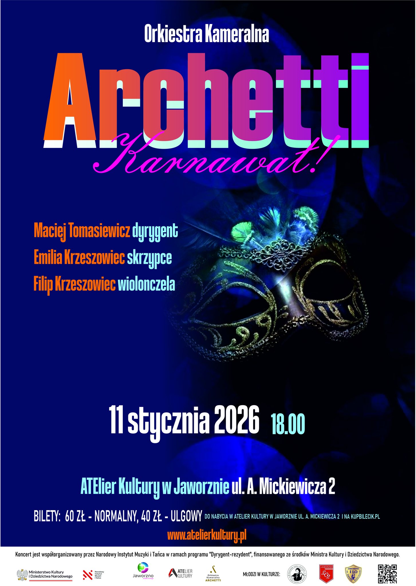Serdecznie zapraszamy ro rozpoczęcia nowego roku z Orkiestra Kameralna Archetti już w najbliższą niedzielę 11 stycznia 2026 r., w ATElier Kultury przy ul. A. Mickiewicza 2