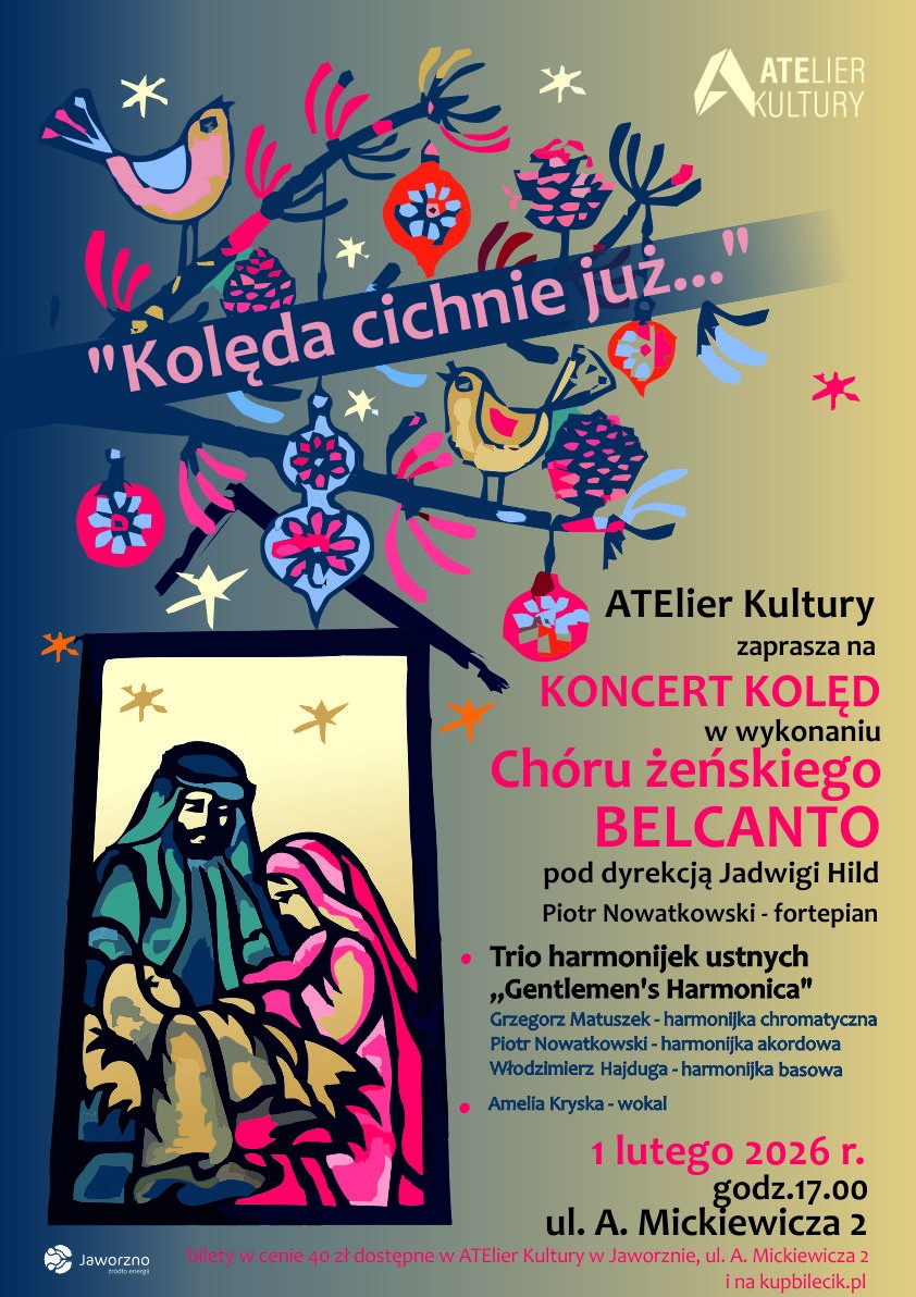 Serdecznie zapraszamy 1 lutego 2026 r., na "Koncert kolęd" w wykonaniu Chóru Żeńskiego Belcanto pod dyrekcją Jadwigi Hild.