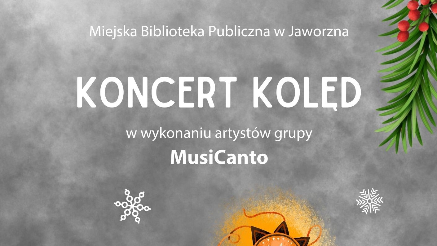 Choć święta Bożego Narodzenia już za nami, warto jeszcze na chwilę wrócić do ich wyjątkowej atmosfery. Miejska Biblioteka Publiczna w Jaworznie serdecznie zaprasza na Koncert kolęd, w trakcie którego w świątecznym repertuarze zaprezentują się artyści grupy MusiCanto. Wydarzenie odbędzie się 29 stycznia 2026 r. o godz. 17.00. Serdecznie zapraszamy.