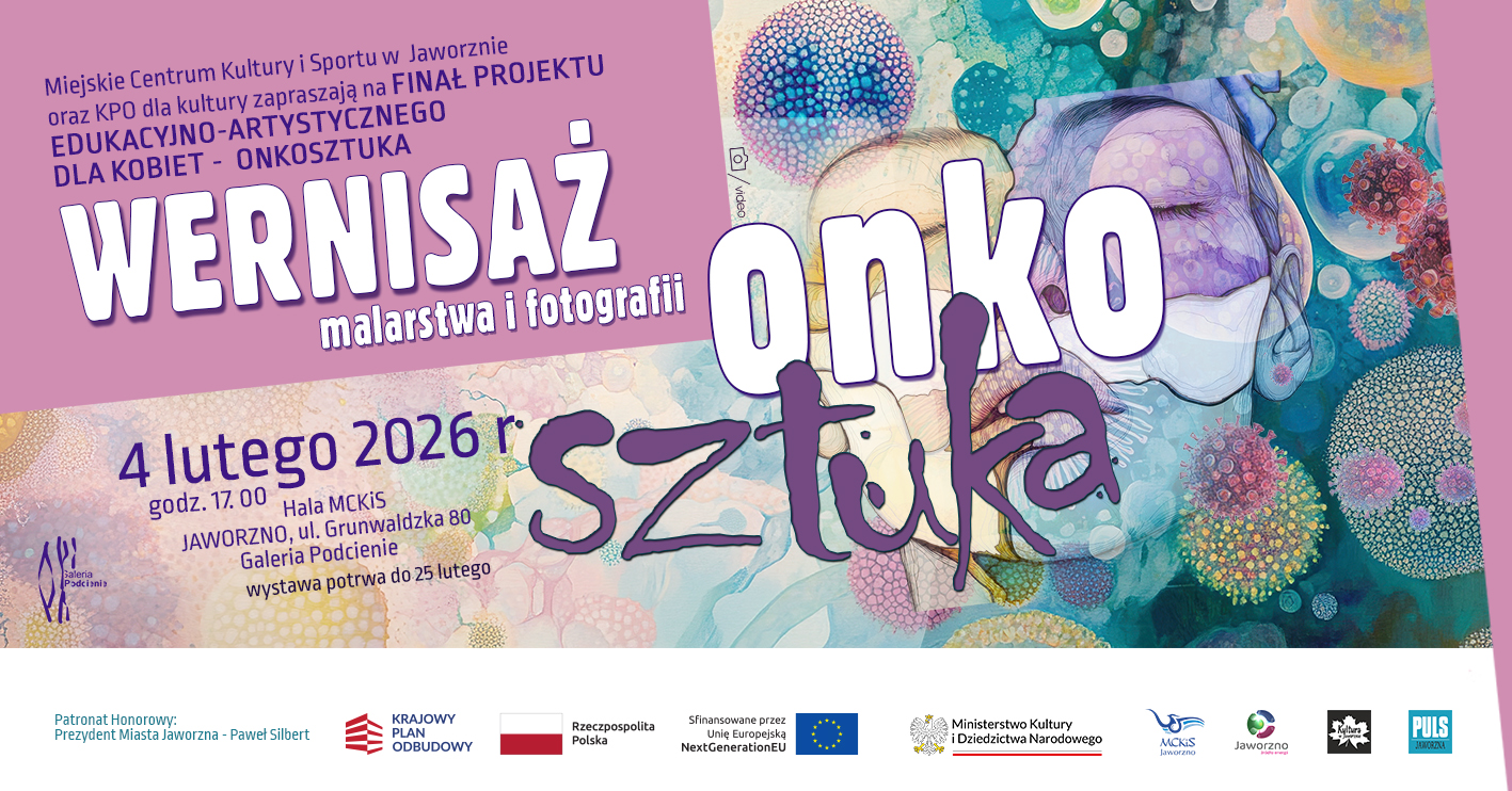 Serdecznie zapraszamy na wernisaż malarstwa i fotografii uczestniczek projektu „Onkosztuka”, który odbędzie się w środę, 4 lutego, o godzinie 17:00 w Galerii Podcienie w Hali Widowiskowo-Sportowej MCKiS.