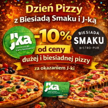 Z okazji Międzynarodowego Dnia Pizzy zapraszamy do Biesiady Smaku, gdzie czeka na Ciebie 10% zniżki na pizzę dużą oraz pizzę biesiadną 🧀🔥