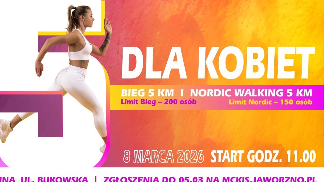 Z okazji Międzynarodowego Dnia Kobiet zapraszamy Panie do udziału w 5. edycji wydarzenia sportowo-rekreacyjnego „Piątka dla Kobiet”. Impreza odbędzie się w niedzielę, 8 marca 2026 r. na terenie OWR Sosina. W ramach wydarzenia zaplanowano bieg na dystansie 5 km (start o godz. 11.00) oraz marsz nordic walking (start o godz. 11.02) na tym samym dystansie.