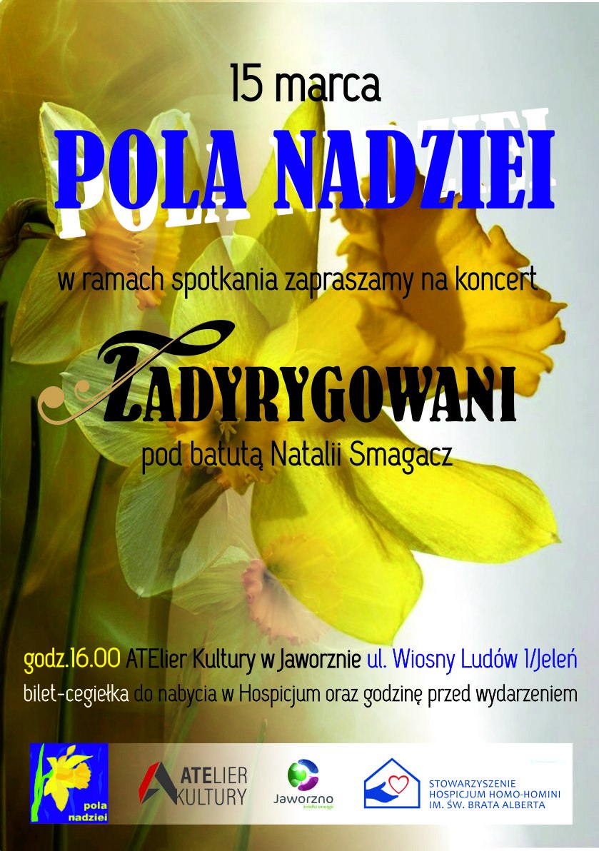 Inauguracja Kampanii Pól Nadziei z ATElier to już tradycja. Tym razem zapraszamy na to wyjątkowe wydarzenie do naszej siedziby w Jeleniu (Wiosny Ludów 1). Uroczystość uświetni zespół wokalno-instrumentalny Zadyrygowani pod batutą Natalii Smagacz.