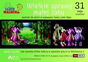 Teatr Lalek Bajka zaprezentuje opowieść "Wielkie sprawy małej żaby" w pięknym wydaniu oraz z cennym przekazem i morałem.